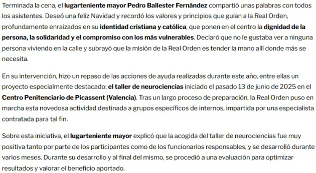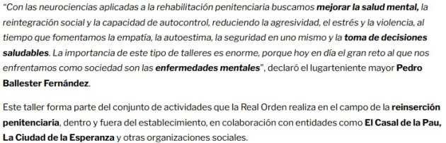Orden, perteneciente al complejo penitenciario de Picassent. En sus palabras, subrayó el espíritu que guía las actuaciones del centro, basado en la reinserción social total de sus usuarios. Asimismo,