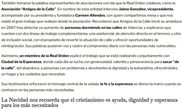Sus palabras subrayaron el compromiso espiritual, ético y social que los nuevos miembros asumen al ingresar en esta antigua institución, heredera de un legado que tiene sus raíces en la historia del Reino de Valencia y se dedicó una oración especial hacia las víctimas de la DANA.