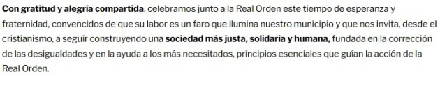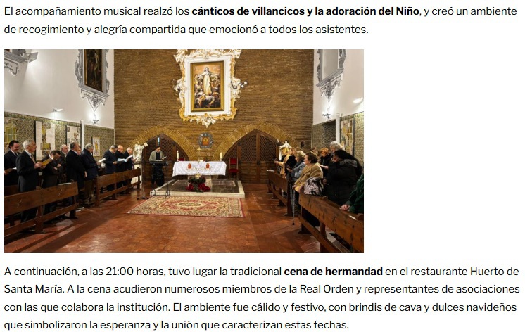 Tras la eucaristía, los miembros de la Real Orden compartieron una cena de hermandad, en la que el Lugarteniente Mayor destacó la labor realizada durante el año anterior y expuso