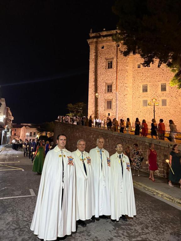 Una importante y nutrida comitiva de Caballeros y Damas de la Real Orden, s, tomó parte en los oficios religiosos y en la procesión. Al frente de la misma se encontraba su Lugarteniente Mayor, quien ejerció la representación máxima de la institución, encarnando el espíritu de servicio y lealtad que define a esta milicia caballeresca.