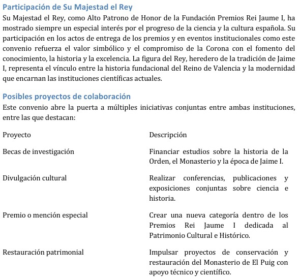 Firma de Convenio entre la Fundación Premios Rei Jaume I y la Real Orden de Caballeros de Santa María de El Puig